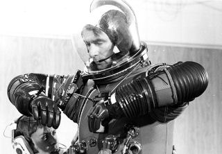 Und der Raumanzug hat ausgehfein eine Masse von 81 kg! |
