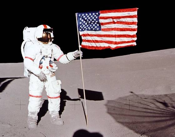 unten zu sehende Foto von Alan Shepard, wie er immer noch die Fahnenstange