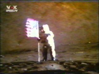 Bei allen Filmszene mit flackernden Fahnen macht sich ein Astronaut an der